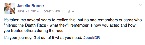 I didn’t realize it at the time, but that applies to races beyond the Death Race. Being an athlete is so much more than your finishing times, or your win/loss record, or your PRs. And similarly, it applies whether or not you are even racing. Sometimes, the best thing you can do is just be there. Smile. Cheer. Soak up the community.